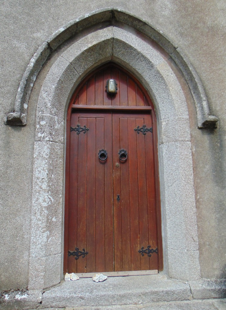I keep religious items on display at home. For example, I have a bookshelf where I display denomination-specific church items (everything from prayer beads to candles). In addition, I keep memorabilia around – such as a photo of the church door at St. Fiaac’s Church in Co. Wicklow, Ireland where my great-grandfather was baptized; that’s the photo I used at the beginning of this post (I took the photo when I visited the church several years ago).